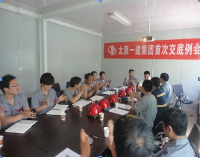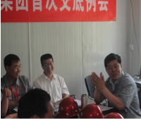 5月17日上午9:00集團公司副總經(jīng)理宋雙玉、總經(jīng)理助理李隆帶領(lǐng)集團公司工程管理部、質(zhì)量安全部等有關(guān)部門負責(zé)人,在太原市第三人民醫(yī)院門診樓工程項目部召開首次交底例會和企業(yè)新CIS視覺識別系統(tǒng)現(xiàn)場試點項目授牌儀式,直屬分公司經(jīng)理郭貴法和本項目部全 體管理人員參加會議。會議由工程管理部副部長王飛主持。