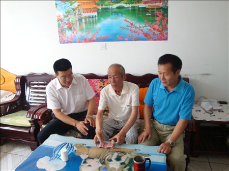 6月18日,在紀念中國共產(chǎn)黨成立90周年之際,黨委領導慰問建國前入黨的老黨員。公司黨委副書記宋雙玉、黨委辦公室主任范立強,副主任胡洪飛、工會副主席門紅一行四人看望了建國前入黨的原公司老領導、老同志武衛(wèi)國、楊永弟、崔懷保、劉熙伶等老黨員,給他們贈送了紀念中國共產(chǎn)黨成立90周年鍍金紀念章、紀念冊和慰問金,同老黨員一道回顧了黨的歷史,暢談了中國共產(chǎn)黨90年來的豐功偉績。同時,采用黨委領導上門慰問或委托基層黨支部慰問看望等方式,先后看望慰問的困難黨員11人,給他們送去了慰問金和黨組織對他們的關懷和問候。