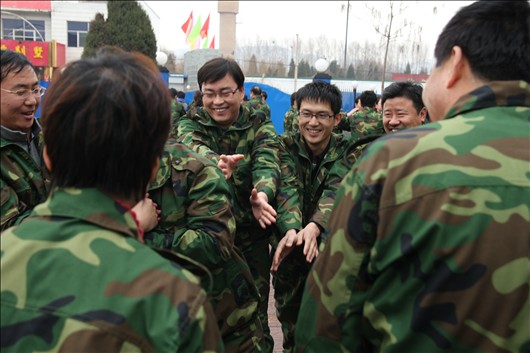 訓(xùn)練的第一項內(nèi)容被稱為“破冰”,是以游戲的形式讓所有參加的人不論職務(wù)、年齡、性別,心與心之間縮短距離,消除隔閡,讓所有人在短時間內(nèi)用心融入到這個大的團隊中。同時,啟發(fā)我們突破固有的思維方式,做一些按常規(guī)思維認為不可能做到的事情。接下來把所有人隨機分成了六個小隊,并通過各隊全體隊員集思廣益、各盡所能的方式分別自創(chuàng)了隊名、隊旗、隊徽、隊訓(xùn)、隊歌,從而初步體現(xiàn)團隊的凝聚力,樹立每個隊員的團隊意識和集體榮譽感。