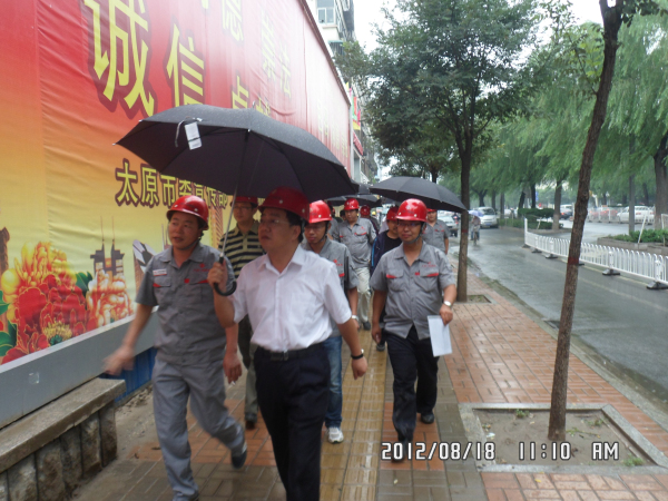 8月18日(星期六)集團(tuán)公司領(lǐng)導(dǎo)王貴聰、張岐泰、宋雙玉、司中謙、王斌、路志旭、趙晨輝、劉潔、趙琦、李隆、范力強(qiáng)等分別到一處濱河小區(qū)工地,二分公司冶峪泵站工地和直屬分公司第三人民醫(yī)院工地對(duì)安全生產(chǎn)隱患排查,防汛、現(xiàn)場(chǎng)管理,進(jìn)行檢查指導(dǎo),在直屬分公司第三人民醫(yī)院項(xiàng)目部推廣應(yīng)用的CIS視覺(jué)識(shí)別系統(tǒng)進(jìn)行論證。總經(jīng)理王貴聰針對(duì)各工地現(xiàn)場(chǎng)存在的問(wèn)題提出整改意見(jiàn)。
