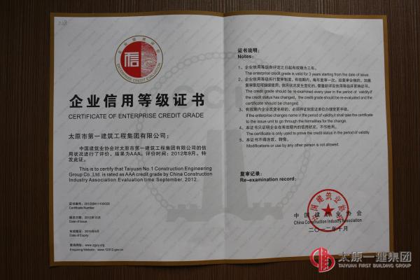 企業(yè)信用等級(jí)證書