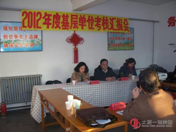會(huì)上,王麗鶯同志宣讀了集團(tuán)公司并一建董發(fā)(2012)8號(hào)、并一建經(jīng)發(fā)(2012)50號(hào)《關(guān)于開(kāi)展全面總結(jié)考核活的通知》文件,各基層單位按照會(huì)議議程先后進(jìn)行了PPT演示匯報(bào),在觀(guān)看、聽(tīng)取了各單位的演示匯報(bào)后,考核組組長(zhǎng)王斌逐一對(duì)3個(gè)基層單位進(jìn)行了點(diǎn)評(píng),在肯定成績(jī)的同時(shí),重點(diǎn)指出了工作中存在的不足和差距,并針對(duì)性地提出了希望和要求。接受考核的3個(gè)基層單位領(lǐng)導(dǎo)班子成員及考核組成員共計(jì)15人參加了會(huì)議。