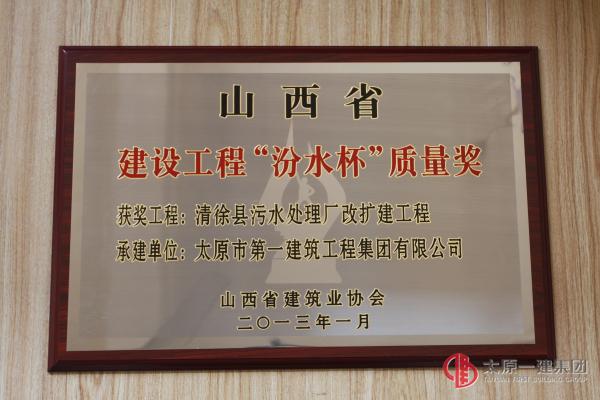 山西省建設(shè)工程“汾水杯”質(zhì)量獎-清徐縣污水處理廠改擴建工程