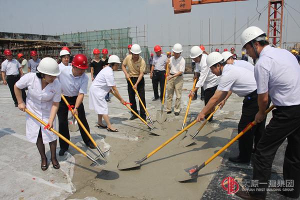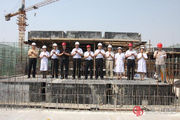2014年8月27日四分公司承建的山西醫(yī)科大學第二醫(yī)院綜合住院工程歷時約180天主體施工順利封頂。參加本次主體封頂儀式的單位有:建設單位山大二院領導成員及基建辦相關人員;監(jiān)理單位總監(jiān)、監(jiān)理員;集團公司董事長王貴聰、集團公司常務副總張歧泰、分公司領導及項目部管理人員,山西易通勞務公司經(jīng)理李偉等參加了此次封頂儀式。
