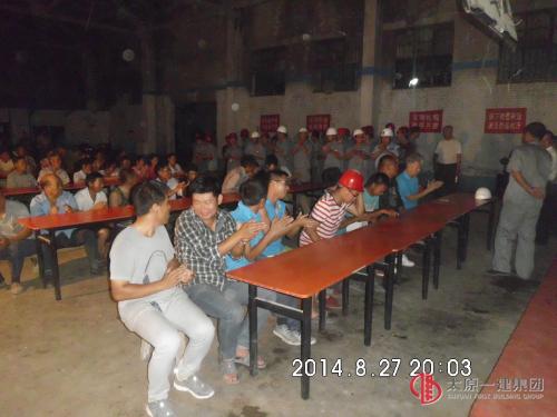 怡然家園項目總指揮部全體管理人員于2014年8月27日晚7點30分在生活區(qū)安全活動講臺對監(jiān)理人員、各施工標段現(xiàn)場負責人、安全員、施工員、勞務負責人、勞務分區(qū)經(jīng)理、樓長、安全員等現(xiàn)場管理人員以及全體施工人員開展了安全教育大會活動。