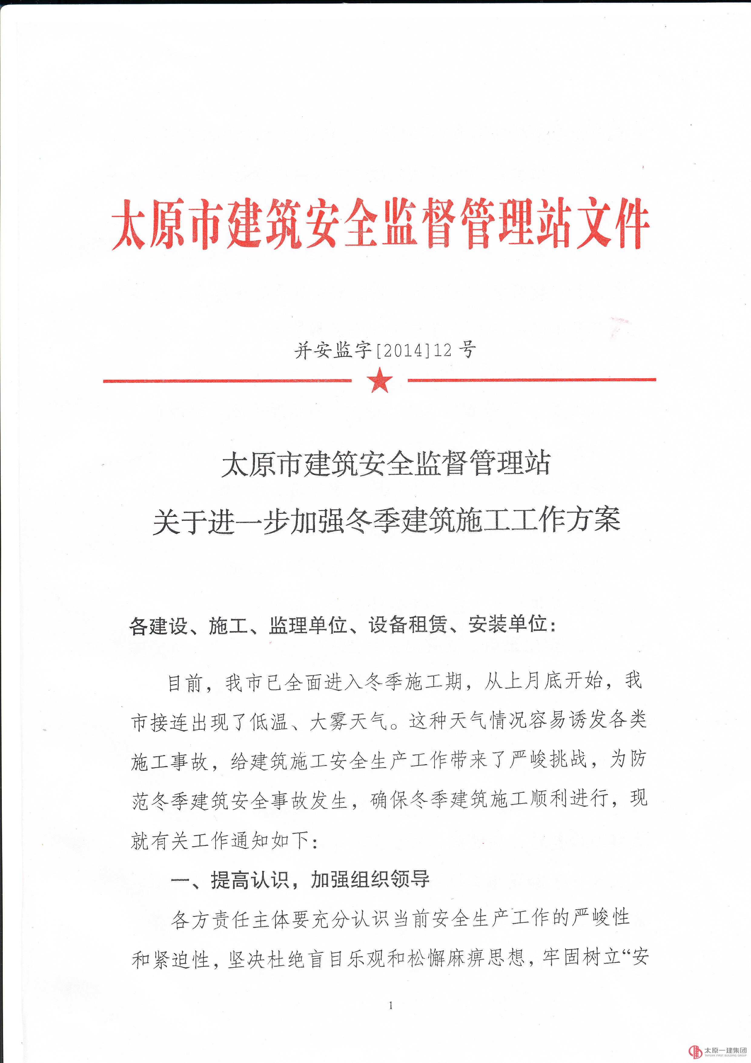 關(guān)于轉(zhuǎn)發(fā)太原市建筑安全監(jiān)督管理站《關(guān)于進一步加強冬季建筑施工工作方案》