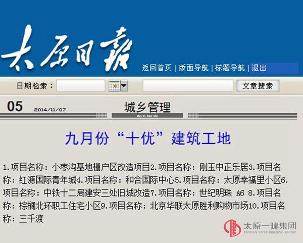 由我分公司承建的紅源國(guó)際青年城2#商住樓項(xiàng)目,被太原市城鄉(xiāng)管理行政執(zhí)法局評(píng)選為九月份太原市“十優(yōu)”建筑工地,且位列前三。