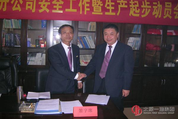 3、副經(jīng)理劉憲玲全文宣讀了董事長王貴聰在春節(jié)上班第一天機(jī)關(guān)干部見面會(huì)上的“愛企業(yè)、有作為、守紀(jì)律、懂規(guī)矩”的講話和設(shè)備分公司安全目標(biāo)責(zé)任書,并由分公司負(fù)責(zé)人與機(jī)械租賃站負(fù)責(zé)人、鋼結(jié)構(gòu)廠廠長和項(xiàng)目部簽訂安全生產(chǎn)目標(biāo)責(zé)任書。