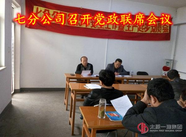 3月30日下午2:30,七分公司召開(kāi)黨政聯(lián)席會(huì)議,會(huì)議由分公司經(jīng)理郭建新主持,分公司副經(jīng)理、項(xiàng)目經(jīng)理、科長(zhǎng)等12人參加。