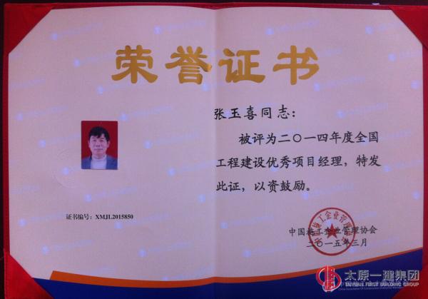 張玉喜、趙崇山分別榮獲2014年度全國(guó)工程建設(shè)優(yōu)秀項(xiàng)目經(jīng)理稱(chēng)號(hào)!