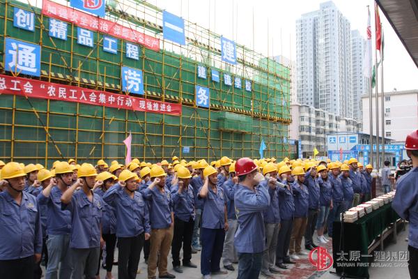 6月17日下午,太原市總工會(huì)“農(nóng)民工入會(huì)集中行動(dòng)” 暨夏季“送清涼”慰問活動(dòng)在二十七中學(xué)校新建項(xiàng)目隆重舉行?;顒?dòng)由太原市總工會(huì)副主席郎學(xué)軍主持,參加活動(dòng)的有市人大副主任、市總工會(huì)主席馮晉生、市住建委調(diào)研員強(qiáng)力軍、集團(tuán)公司董事長(zhǎng)、總經(jīng)理王貴聰?shù)阮I(lǐng)導(dǎo),易通勞務(wù)公司承辦了本次活動(dòng)。首先,太原市入并建筑企業(yè)工會(huì)聯(lián)合會(huì)主席陳敏就“農(nóng)民工入會(huì)”發(fā)表了講話。二、易通勞務(wù)公司總經(jīng)理李偉就農(nóng)民工入會(huì)工作作了表態(tài)發(fā)言。三、易通勞務(wù)公司工會(huì)會(huì)員代表鄧睿星帶領(lǐng)農(nóng)民工進(jìn)行了入會(huì)宣誓。四、馮主席、王董事長(zhǎng)等領(lǐng)導(dǎo)把會(huì)員證、西瓜、白糖、毛巾等慰問品親手送到了農(nóng)民工手中,對(duì)大家進(jìn)行了慰問。領(lǐng)導(dǎo)們還興致勃勃的參觀了工人生活區(qū),對(duì)現(xiàn)場(chǎng)管理給予了高度評(píng)價(jià)。270名農(nóng)民工集中入會(huì),“回到娘家”把入會(huì)的感動(dòng)化作愛崗敬業(yè),干好工作的行動(dòng)。二十七中學(xué)校新建項(xiàng)目農(nóng)民工集中入會(huì)、慰問活動(dòng)是市總工會(huì)對(duì)企業(yè)勞務(wù)管理工作的認(rèn)可,使農(nóng)民工真切感受到“家”的關(guān)心關(guān)愛,激發(fā)了大家的榮譽(yù)意識(shí)、責(zé)任意識(shí),調(diào)動(dòng)了生產(chǎn)積極性,為集團(tuán)公司的施工生產(chǎn)再立新功。