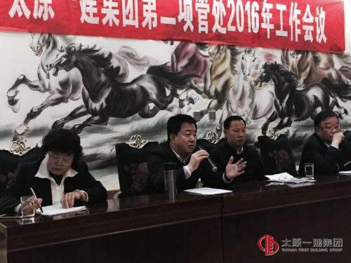 3月3日上午,項(xiàng)管二處召開2016年工作安排暨生產(chǎn)起步動(dòng)員會(huì),參會(huì)人員有:項(xiàng)管二處班子成員、各工程部主任及部分項(xiàng)目經(jīng)理、青年職工代表,共計(jì)35人,集團(tuán)公司董事長(zhǎng)王貴聰、總經(jīng)理李世雄應(yīng)邀參加了會(huì)議。會(huì)議議程: