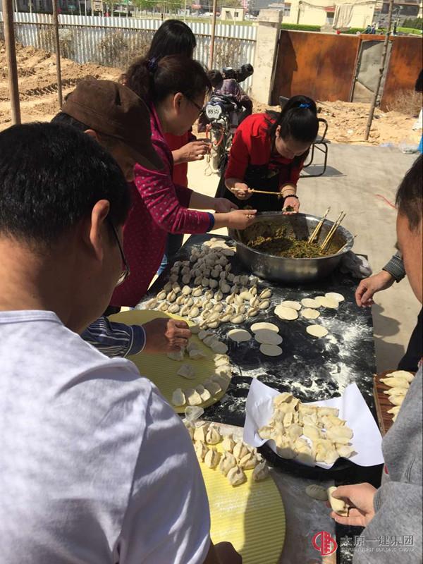 4月10日,是一個陽光明媚的日子,也是我們集團公司成立六周年廠慶的日子,在這個有著特殊意義的日子里,一大早一分公司機關(guān)全體管理人員便帶著新鮮的雞蛋、肉類等來到了晉陽街公園項目部。在這里機聲轟轟,鐵壁高揚,項目部所有人員在施工一線用實際行動迎接著集團公司“六周歲”的生日。機關(guān)人員也紛紛忙碌起來,洗菜,切菜,調(diào)餡,包餃子,大伙有說有笑,干的熱火朝天。