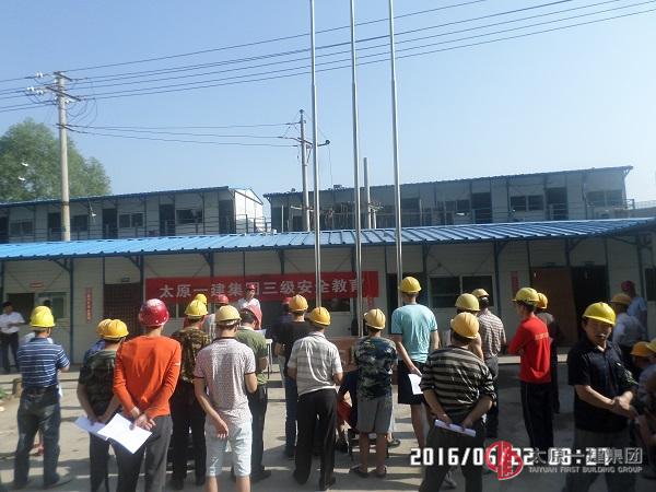 2016年6月22日上午直屬六分公司鄭村5#、10#樓項目部在項目部大院召開三級安全教育會議。