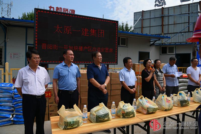 炎炎夏日,驕陽似火。7月27日上午,太原市總工會副主席郎學軍、組織部部長張玲玉、太原市入并建筑企業(yè)工會聯(lián)合會主席陳敏等上級工會領導,帶著西瓜、毛巾、綠豆、礦泉水等慰問品,來到集團公司承建的晉陽街片區(qū)改造安置住房項目進行“夏季送清涼”慰問。集團公司領導王貴聰、張岐泰、李偉、李瑞琪參加了活動。