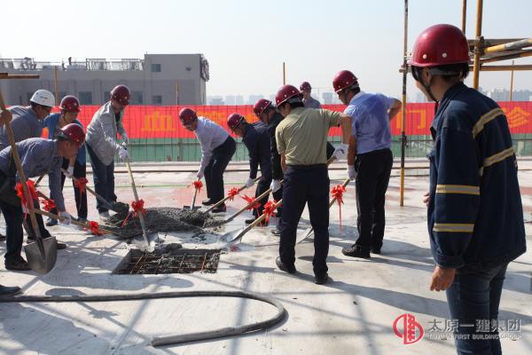 2016年9月23日,風(fēng)和日麗,陽(yáng)光明媚,在這收獲的季節(jié)里,項(xiàng)目工程管理處承建的山西省心血管病醫(yī)院門急診綜合樓順利封頂。參加本次封頂儀式的有山西醫(yī)科大學(xué)第二醫(yī)院院長(zhǎng)、原心血管病醫(yī)院院長(zhǎng)李保、心血管病醫(yī)院紀(jì)委書記及基建辦主任、總監(jiān)理工程師和太原一建集團(tuán)公司總經(jīng)理李世雄、副總經(jīng)理張岐泰及項(xiàng)管處處長(zhǎng)李朝峰、項(xiàng)目執(zhí)行經(jīng)理等項(xiàng)目管理人員。他們共同為門急診綜合樓鏟下了最后一鏟混凝土,標(biāo)志著心血管病醫(yī)院門急診綜合樓順利封頂。