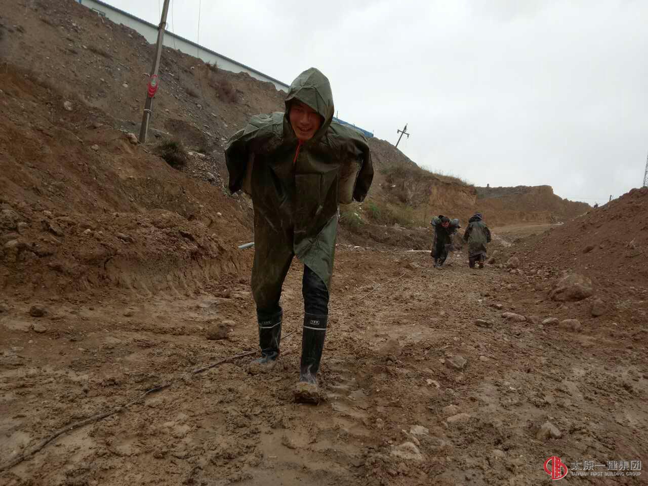 然而由于陽方口地處雁北高寒地區(qū),施工以來,明顯的大風天氣嚴重影響了施工進度;再加上突然的降雨導致坑槽土方不斷發(fā)生坍塌,使施工現場泥濘不堪,施工機械無法進入坑底,面對緊迫的工期、不利的條件,項目部全體管理人員發(fā)揚龍城人“敢打硬仗的精神、吃苦耐勞的斗志”,在采取一系列安全措施下,自我加壓、負重前行,連續(xù)奮戰(zhàn)幾晝夜,冒雨頂風作業(yè),克服了惡劣天氣帶來的重重阻力,保證不間斷施工,最終于5月3日提前完成甲方交代的任務!