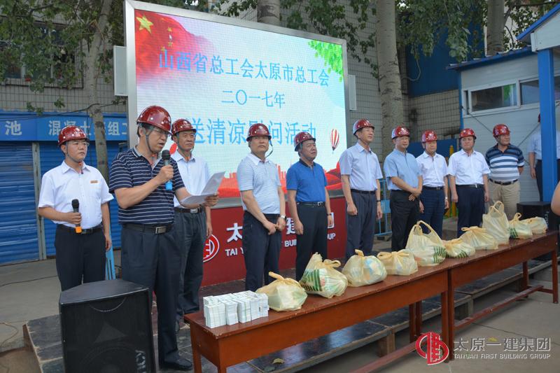 驕陽似火的七月,正值施工生產(chǎn)的黃金時節(jié)。為了切實加強高溫期間廣大職工和農(nóng)民工兄弟的身體健康和生命安全,做好項目一線防暑降溫工作,7月14日下午,省市兩級工會在山西省人大常委會副主任、省總工會主席田喜榮和太原市總工會主席馮晉生的帶領(lǐng)下,蒞臨集團(tuán)公司承建的山西行政學(xué)院(中共山西省委黨校)綜合教學(xué)樓項目,開展“夏送清涼”慰問活動。集團(tuán)公司黨委書記、董事長王貴聰,黨委副書記、總經(jīng)理李世雄,黨委委員、工會主席李瑞琪,黨委委員、副總經(jīng)理、易通勞務(wù)公司經(jīng)理李偉、十三分公司黨支部書記、經(jīng)理孟計根以及山西行政學(xué)院(中共山西省委黨校)院校領(lǐng)導(dǎo)陪同下對施工一線的工人進(jìn)行了慰問。慰問組一行為項目管理人員和農(nóng)民工兄弟送去了毛巾、礦泉水、西瓜、綠豆等一系列防暑降溫物品。田主席再三叮囑項目部要統(tǒng)籌安排好施工時間,錯峰施工,做好防暑降溫工作;叮囑一線管理人員和農(nóng)民工兄弟要注意身體,做好高溫下的自我調(diào)節(jié),防止中暑生病。集團(tuán)公司領(lǐng)導(dǎo)就該項目的施工組織、安全生產(chǎn)、工程進(jìn)度等工作做了重點強調(diào)和安排,并要求項目部要做好高溫下的安全生產(chǎn)工作,為農(nóng)民工兄弟創(chuàng)造良好的生產(chǎn)生活環(huán)境。
