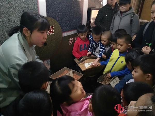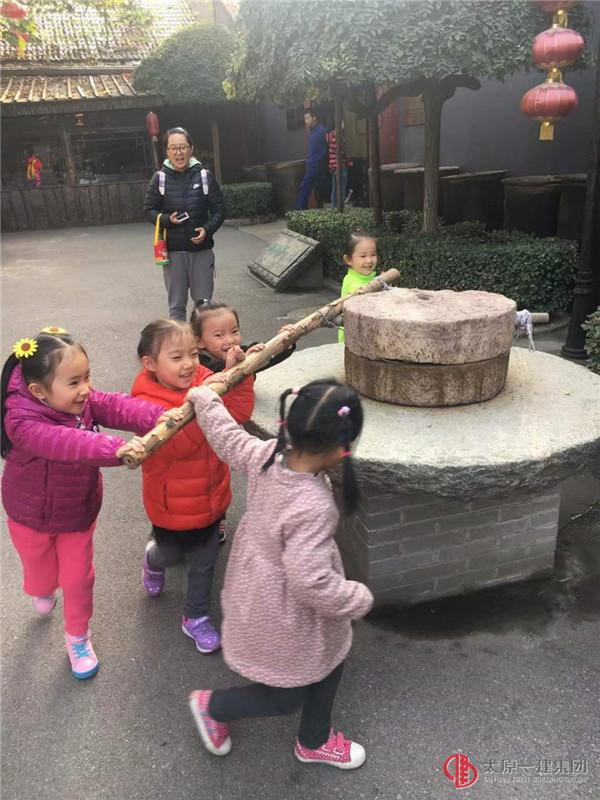 臨近仿古建筑美和居醋坊,迎面而來的是既酸又香的老陳醋氣味。進入古色古香的美和居醋坊,猶如來到了500年前的老陳醋作坊,老醋芳香、撲鼻沁心,醋味十足,難以忘懷。作坊內(nèi)“蒸、酵、熏、淋、曬”的老陳醋制作工藝和步驟一覽無余,小朋友們都被眼前的醋坊吸引,那些又高又深的醋缸,古色古香的建筑,綿甜酸香的陳醋味道,讓人流連忘返。你摸摸手推車,我捧捧做醋的糧食,他聞聞醋缸里的十年陳釀,再使勁推推磨盤。。。孩子們玩的不亦樂乎,家長們看的停不下來!