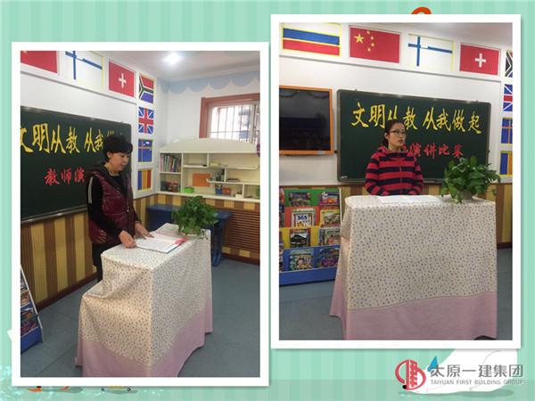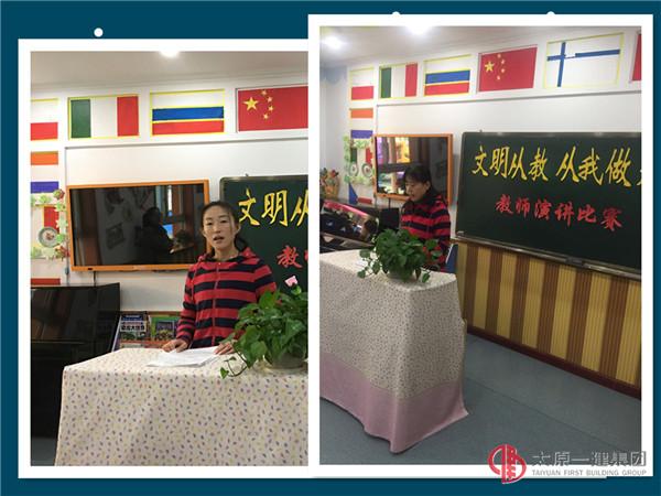 百年中國(guó)夢(mèng),創(chuàng)建文明城,爭(zhēng)做文明市民是每個(gè)公民義不容辭的責(zé)任。文明禮儀作為中華名族傳承五千年的優(yōu)秀品德讓我們從小根植于心。為提升教師文明從教的意識(shí),提高教師自身修養(yǎng),樹(shù)立教師良好形象,緊隨公司 “百人百天,周六講壇”演講比賽的步伐,幼兒園于11月1日、2日組織了“文明從教,從我做起”主題演講活動(dòng),園領(lǐng)導(dǎo)及全體教師參加了演講。