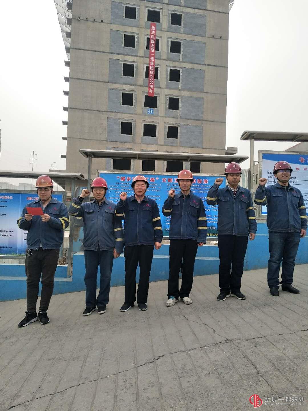 4月10日是太原一建集團(tuán)成立68周年的日子。在這喜慶的日子里,直屬分公司各施工現(xiàn)場懸掛條幅,開展升國旗、唱司歌、誦員工誓詞活動來慶祝。分公司駐地在經(jīng)理郭貴法的帶領(lǐng)下也進(jìn)行了系列活動:⒈工會主席劉衛(wèi)紅帶領(lǐng)大家唱司歌、誦員工誓詞。⒉支部副書記高衛(wèi)國重溫了“集團(tuán)公司二季度黨群工作會議”精神。并對分公司黨建工作進(jìn)行了具體安排。⒊支部書記郭貴法向大家提出,以“4月3日”會議精神為指導(dǎo),認(rèn)真按照集團(tuán)公司二季度黨群工作要求,按時、逐項完成各項具體工作,推進(jìn)分公司黨群工作助力施工生產(chǎn)。⒋在分公司大院進(jìn)行了授家文化牌儀式。集團(tuán)公司董事長王貴聰帶隊一行8人深入分公司授家文化牌。我們太原一建人在集團(tuán)公司的正確領(lǐng)導(dǎo)下,弘揚(yáng)“家”風(fēng),促動全體員工凝心聚力,務(wù)實創(chuàng)新,自強(qiáng)致勝,不忘初心,不忘初衷,不忘根本朝著百年強(qiáng)企夢目標(biāo)奮進(jìn)!