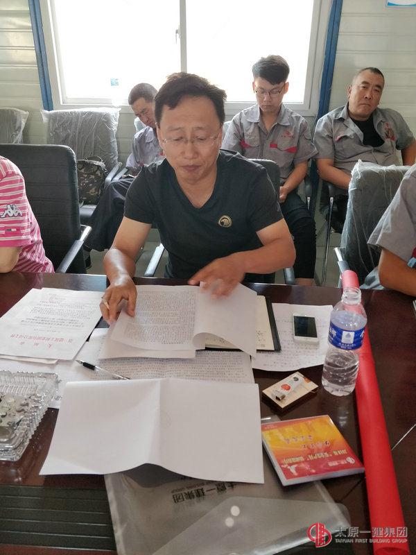 6月6日上午8點,七分公司在后北屯項目部召開6月現(xiàn)場安全生產(chǎn)會議。會議由分公司生產(chǎn)副經(jīng)理鄭江峰主持,分公司領(lǐng)導(dǎo)、項目經(jīng)理、科長及技術(shù)負責(zé)人等參加。