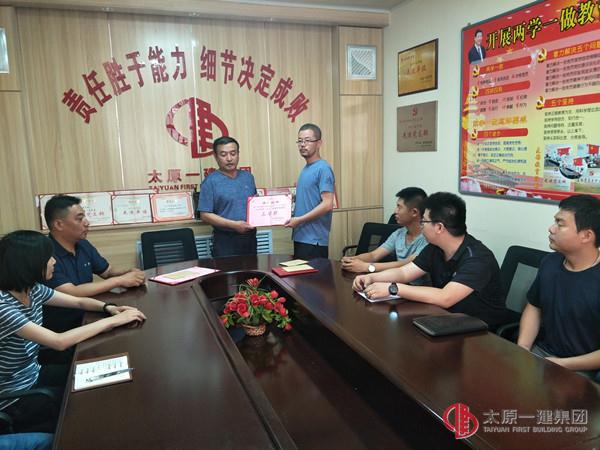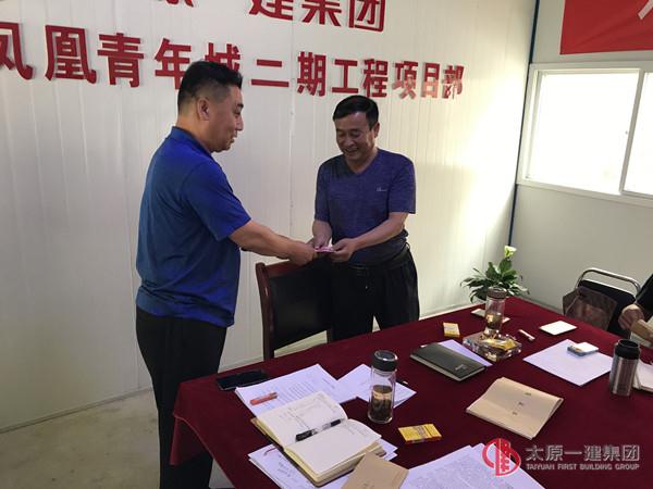 五、分公司經(jīng)理為寧武項(xiàng)目部頒發(fā)集團(tuán)公司第一階段安全專項(xiàng)整治活動(dòng)二等獎(jiǎng);為獲得項(xiàng)目總工和五小崗位創(chuàng)新競賽的獲獎(jiǎng)?wù)哳C發(fā)證書及獎(jiǎng)金。鼓勵(lì)員工繼續(xù)努力、再創(chuàng)佳績。