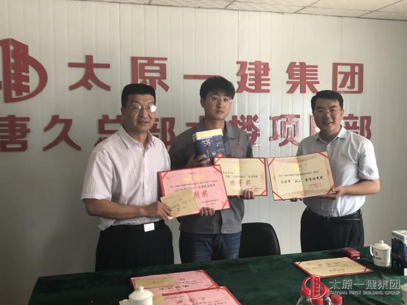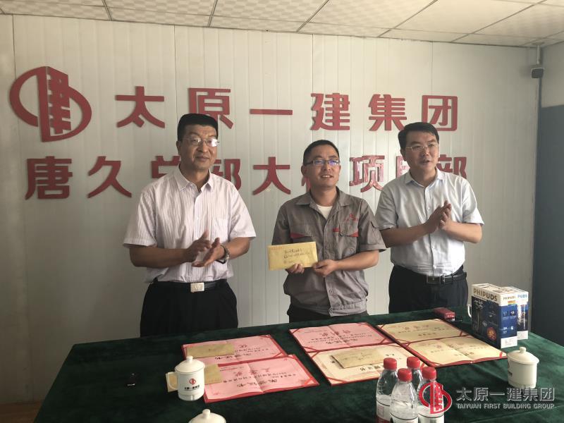 6月7日上午,集團(tuán)公司黨委副書記、副董事長(zhǎng)宋雙玉,集團(tuán)公司黨委委員、工會(huì)主席李瑞琪等一行人蒞臨直屬分公司唐久總部大樓項(xiàng)目,在分公司經(jīng)理郭貴法及項(xiàng)目部全體員工陪同下,為直屬分公司“王奇銳創(chuàng)新工作室”、“做八有新人”征文獲獎(jiǎng)?wù)摺?ldquo;五小”活動(dòng)獲獎(jiǎng)?wù)摺㈨?xiàng)目總工同臺(tái)講競(jìng)賽頒發(fā)獎(jiǎng)金、獎(jiǎng)品及榮譽(yù)證書。