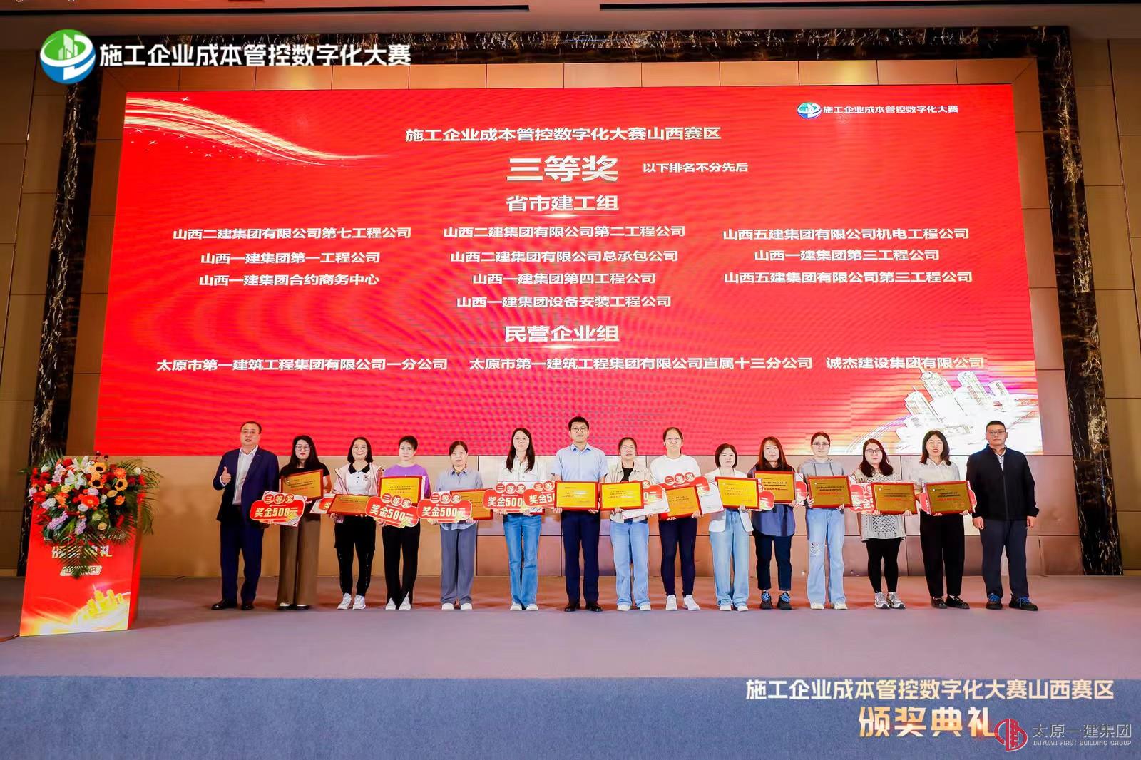 9月25日在山西省建設(shè)工程造價管理協(xié)會聯(lián)合廣聯(lián)達(dá)科技股份有限公司共同舉辦的施工企業(yè)數(shù)字化成本管控大賽山西賽區(qū)頒獎典禮暨優(yōu)秀成果分享會中獲得以下殊榮: