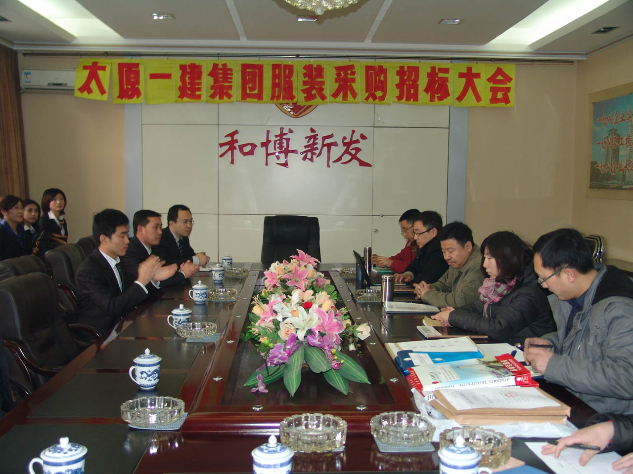 經(jīng)過集團公司服裝采購招標(biāo)領(lǐng)導(dǎo)組前期的認(rèn)真準(zhǔn)備,2011年1月22日上午9時在集團公司二樓會議室召開集團公司工裝采購公開招標(biāo)會。會議由工程管理部部長李隆主持,審計監(jiān)察部副部長付朝紅負(fù)責(zé)對招標(biāo)程序及過程進(jìn)行監(jiān)督。按招標(biāo)文件規(guī)定,有四家合規(guī)的國內(nèi)知名牌服裝供應(yīng)商參加了投標(biāo)。市場開發(fā)部業(yè)務(wù)主任高強、唐利鋼對四家單位的資質(zhì)及招標(biāo)文件進(jìn)行了認(rèn)真的審核,四家投標(biāo)商分別進(jìn)行了詳細(xì)的講標(biāo),招標(biāo)會議在公開、公平、公正、激烈競爭的環(huán)境中進(jìn)行。集團公司總經(jīng)理助理、服裝采購招標(biāo)領(lǐng)導(dǎo)組組長劉潔、行政保衛(wèi)部業(yè)務(wù)主任高玲玲參加了招標(biāo)會議。