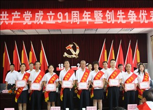 在全黨全國人民歡慶蛟龍下海、神九上天的時刻,迎來了中國共產(chǎn)黨成立91周年華誕之日,為紀念這神圣而偉大的節(jié)日,集團公司黨委隆重召開紀念中國共產(chǎn)黨成立91周年暨創(chuàng)先爭優(yōu)表彰大會。集團公司黨員領導干部、各黨支部領導、先進集體代表、優(yōu)秀共產(chǎn)黨員、各團支部書記共計110余人歡聚一堂,共同慶祝黨的生日。市住建委及市建工集團領導蒞臨大會并講了話。 上午9時,大會在雄壯的《國歌》聲中拉開序幕。會上,黨委書記王貴聰作了紀念建黨91周年專題講話,回顧了黨的91年的豐功偉績,總結了一年來創(chuàng)先爭優(yōu)工作,提出了當前和下半年的主要工作任務,要求全體黨員一定要繼承和發(fā)揚黨的優(yōu)良傳統(tǒng)和作風,牢記黨的宗旨,以更加奮發(fā)有為的精神狀態(tài),求真務實的工作作風,團結和帶領全公司廣大職工,埋頭苦干,扎實工作,與時俱進,奮力拼搏,為實現(xiàn)集團公司三年發(fā)展規(guī)劃,為企業(yè)跨越發(fā)展,為集團公司員工更有尊嚴而努力奮斗,以優(yōu)異成績迎接黨的十八大! 大會表彰了一年來在創(chuàng)先爭優(yōu)活動中涌現(xiàn)出的先進集體和優(yōu)秀個人。黨委委員王斌宣讀了《表彰決定》,黨委領導分別為8個先進黨支部、6個星級黨員先鋒工程、50名優(yōu)秀共產(chǎn)黨員、6名優(yōu)秀共產(chǎn)黨員標兵,9名優(yōu)秀黨務工作者頒發(fā)了獎牌或證書。優(yōu)秀黨員代表十五分公司主任工程師張曉鵬,優(yōu)秀黨務工作者代表十六分公司黨支部副書記侯靜怡分別作了大會表態(tài)發(fā)言。 大會向全體黨員發(fā)出倡議。號召廣大黨員:要向優(yōu)秀看齊,爭做愛崗敬業(yè)的標兵;向優(yōu)秀共產(chǎn)黨員“五帶頭”標準看齊,永葆共產(chǎn)黨員先進性;掀起比學趕幫熱潮,爭創(chuàng)一流業(yè)績。 大會由黨委副書記宋雙玉主持,他要求各級組織,要結合實際認真貫徹落實本次會議精神,把創(chuàng)先爭優(yōu)活動形成的先進思想、先進作風、先進精神發(fā)揚光大;把上級組織和黨委的要求落實到實際工作中;把黨日活動激發(fā)出的熱情干勁和井岡山精神貫徹弘揚到企業(yè)各項工作之中,以加快發(fā)展、重樹形象、增加積累、增強實力、造福員工、回報社會的優(yōu)異成績迎接黨的十八大勝利召開! 大會在莊嚴的《國際歌》聲中落幕。