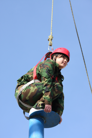 “畢業(yè)墻”,我們已經沒有了組別界限、沒有了男女界限,已經不是一個個獨立的人,而是由許多個人組成的一個堅不可摧的團隊,真真切切體會到了“團隊可以創(chuàng)造奇跡”。從這個團體項目中我們看到了久別了的真誠,看到了早已被淹沒了的樸實,看到了為達目標眾人協(xié)力、甘于奉獻、永不認輸?shù)膭尤艘荒唬惺苤覀冇H愛的同事們帶來的震撼。